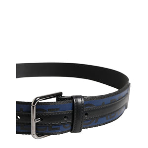 Dolce & Gabbana Black Blue DG Logo Silver Metal Buckle Belt