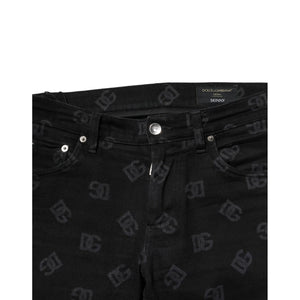 Dolce & Gabbana Black Cotton DG Logo Skinny Men Denim Jeans