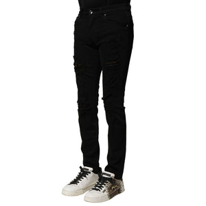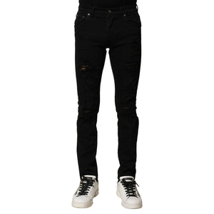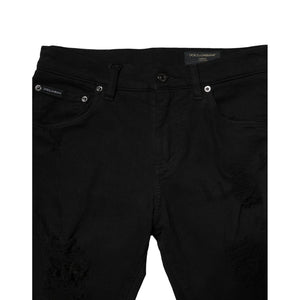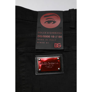 Dolce & Gabbana Black Cotton Logo Plaque Slim Denim Jeans