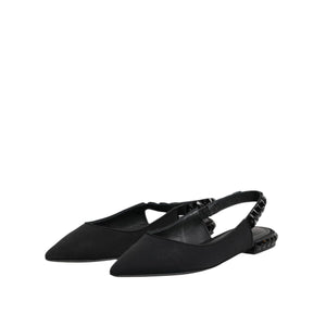 Dolce & Gabbana Black Crystal Charmeuse Slingback Shoes