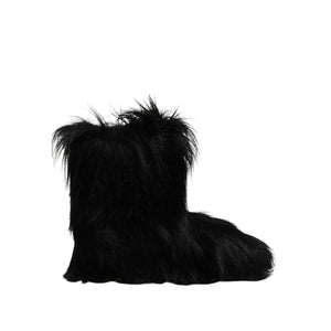 Dolce & Gabbana Black Faux Fur Mid Calf Boots Shoes