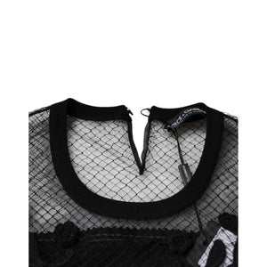 Dolce & Gabbana Black Floral Lace Short Sleeves Blouse Top