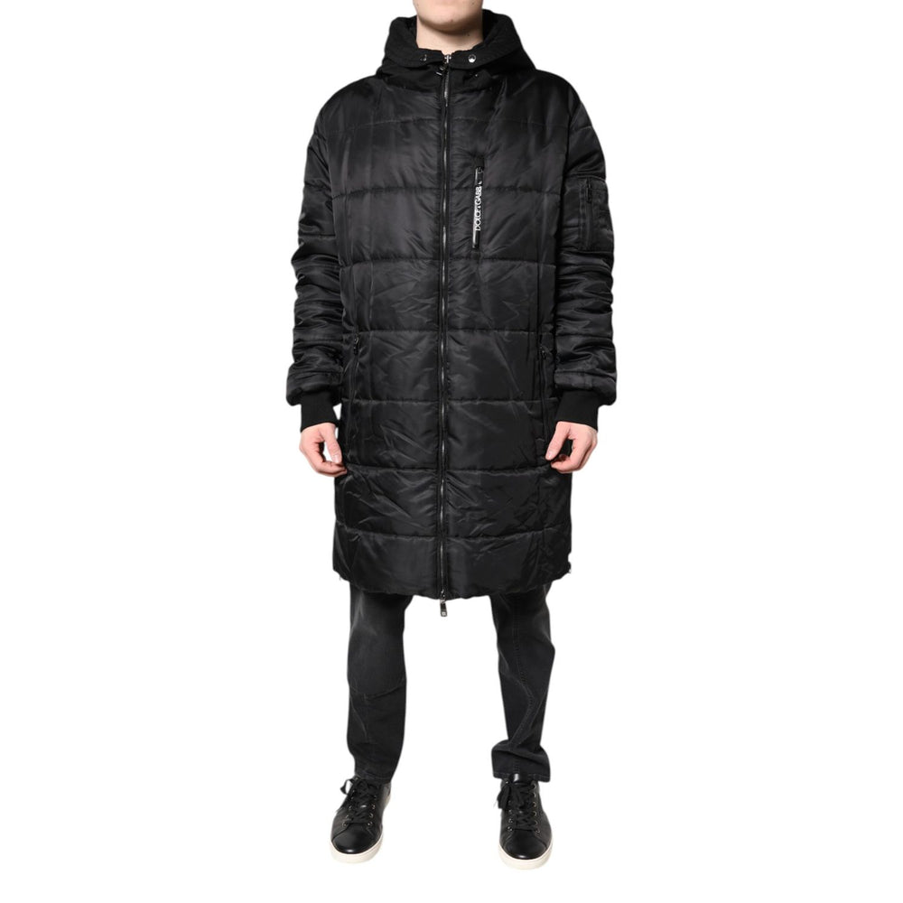 Dolce & Gabbana Black Hooded Parka Coat Winter Jacket