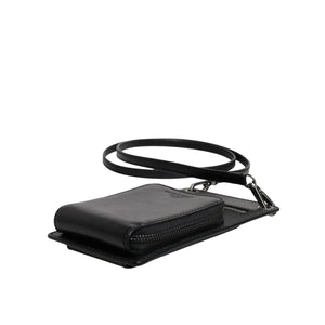 Dolce & Gabbana Black Horse Leather Zip Logo Shoulder Neck Strap Wallet