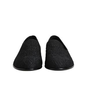Dolce & Gabbana Black Jacquard Slip On Loafers Formal Shoes