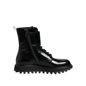 Dolce & Gabbana Black Leather Lace Up Mid Calf Boots Shoes