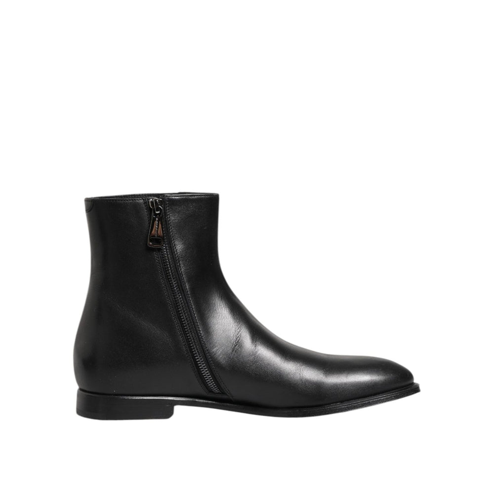 Dolce & Gabbana Black Leather Mid Calf Men Boots Shoes