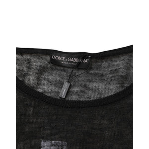 Dolce & Gabbana Black Linen Mesh Tattered Longsleeves T-shirt