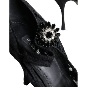 Dolce & Gabbana Black Mary Jane Pumps Lace Crystals Heels Shoes