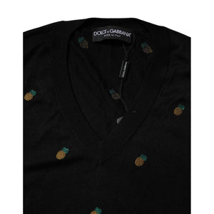 Dolce & Gabbana Black Pineapple Crew Neck Pullover Sweater