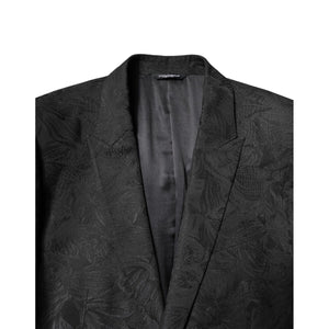 Dolce & Gabbana Black Polyester Floral Jacquard 2 Piece Suit
