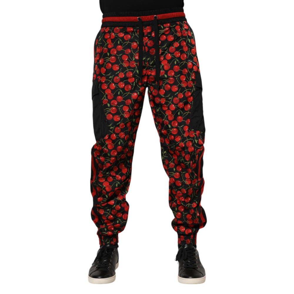 Dolce & Gabbana Black Red Cherry Print Men Sweatpants Pants