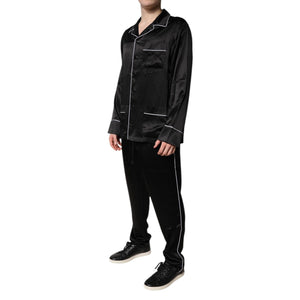 Dolce & Gabbana Black Silk Shirt Pants Pajama Set Sleepwear