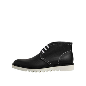 Dolce & Gabbana Black White Leather Ankle Boots Shoes