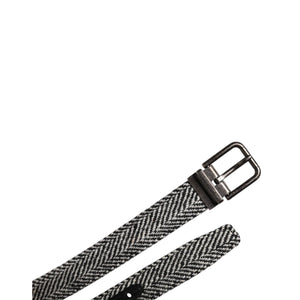 Dolce & Gabbana Black White Silver Tone Metal Buckle Belt