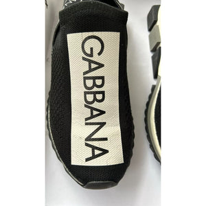 Gorgeous preowned with tags, 100% Authentic Dolce & Gabbana Store sample Black and white ‘Sorrento’ sock sneakers. Decorated with a logo print in white and black. Fabric pull strap sewn-in at the back. Black decorative rubber sole.