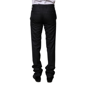 Dolce & Gabbana Black Wool Striped Formal Pants