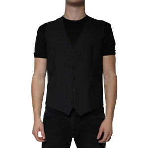 Dolce & Gabbana Black Wool Waistcoat Dress Formal Vest