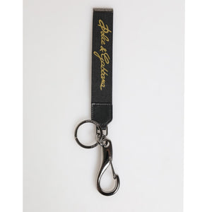Dolce & Gabbana Black Yellow Polyester DG Logo Silver Keychain Keyring