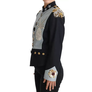 Dolce & Gabbana Blue Button Crystal Embellished Cotton Jacket