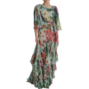 Dolce & Gabbana Blue Floral Print Tiered Long Maxi Dress