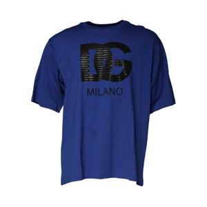 Dolce & Gabbana Blue Logo Print Cotton Men Crew Neck T-shirt