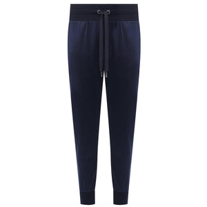 Elevate your wardrobe with these Dolce & Gabbana trousers, a seamless blend of luxury and comfort. Crafted from a premium silk, cotton and nylon blend, these pants are a testament to Italian craftsmanship. Defined by their easy drawstring waist, ribbed elasticated ankles, and practical pocket placement with two side pockets and one at the back, these blue trousers are highlighted by the sophisticated embroidered logo that adds a stamp of designer credibility to your casual ensemble. Dare to stand out in Dolce & Gabbana’s blend of timeless elegance and modern design.