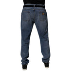 Dolce & Gabbana Blue Tattered Cotton Straight Denim Jeans