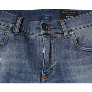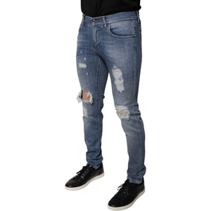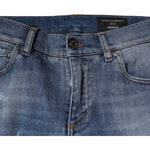Dolce & Gabbana Blue Tattered Cotton Stretch Skinny Denim Jeans