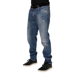 Dolce & Gabbana Blue Washed Cotton Logo Plaque Denim Jeans