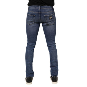 Dolce & Gabbana Blue Washed Skinny Cotton Tattered Denim Jeans