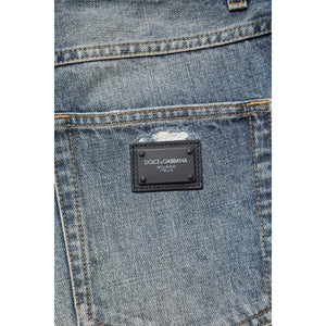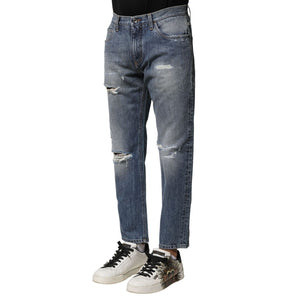 Dolce & Gabbana Blue Washed Tattered Straight Fit Denim Jeans