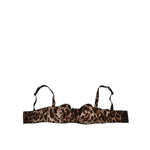 Dolce & Gabbana Brown Leopard Silk Balconnet Bra Underwear with leopard print, silk fabric, and balconette design. Made in Italy.