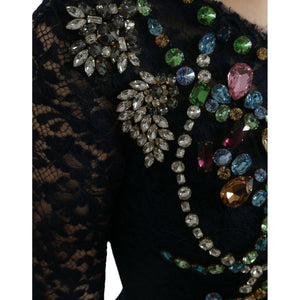 Dolce & Gabbana Blue Crystal Floral Lace Long Gown Dress