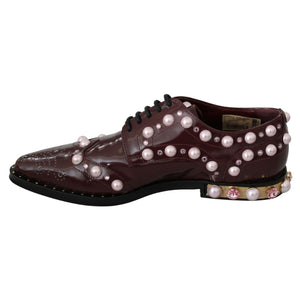 Dolce & Gabbana Bordeaux Leather Crystal Pearls Formal Shoes