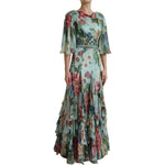 Dolce & Gabbana Blue Floral Print Tiered Long Maxi Dress