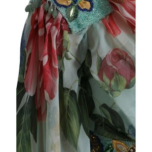 Gorgeous brand new with tags, 100% Authentic Dolce & Gabbana long dress. Made of silk. Embellished colorful floral print. It also features an embellished belted waist.