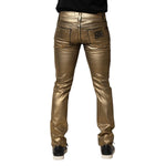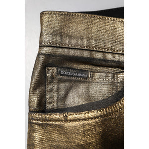 Dolce & Gabbana Gold Tattered Cotton Stretch Slim Denim Jeans