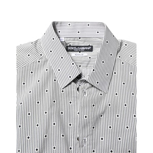Dolce & Gabbana Gray Dotted Semi Fitted GOLD Men Formal Shirt