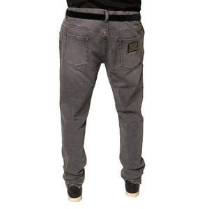 Dolce & Gabbana Gray Logo Cotton Stretch Skinny Denim Jeans