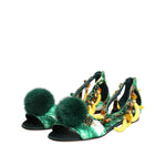 Dolce & Gabbana Green Mink Fur Satin Banana Leaf Sandals Shoes