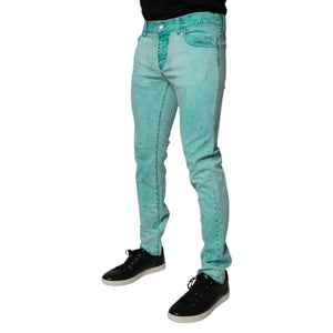 • Dolce & Gabbana Green Tie Dye Cotton Skinny Men Denim Jeans