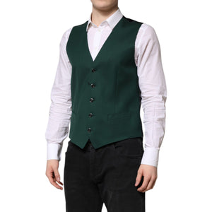 Dolce & Gabbana Green Wool Dress Formal Men Waistcoat Vest