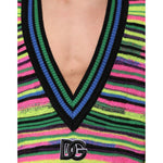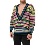 Dolce & Gabbana Multicolor DG Logo V-Neck Knit Pullover Sweater