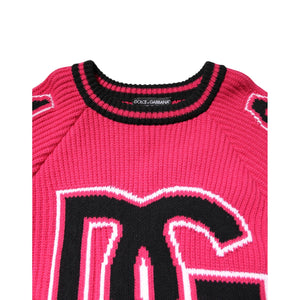 • Dolce & Gabbana Pink Cotton Logo Print Knit Pullover Sweater