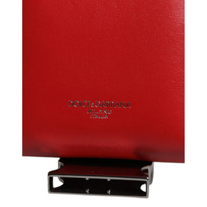 Dolce & Gabbana Red Leather Logo Zip Around Card Holder Wide Strap Wallet
