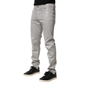 Dolce & Gabbana Silver Cotton Stretch Slim Denim Jeans