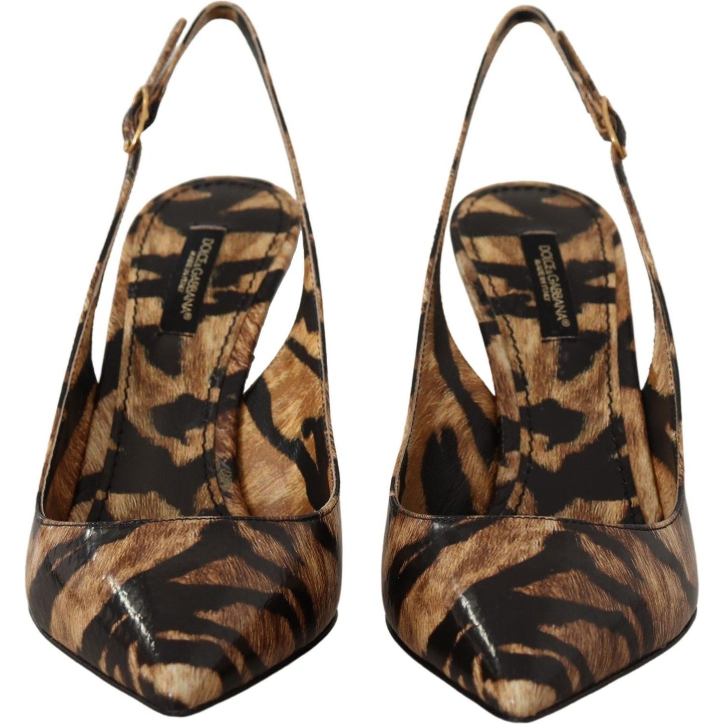 Dolce & Gabbana Brown Slingbacks Leather Tiger Shoes