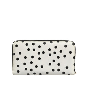 Dolce & Gabbana White Black Dotted Leather Zip Around Continental Wallet
