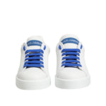 Dolce & Gabbana White Blue Leather Low Top Sneakers Shoes